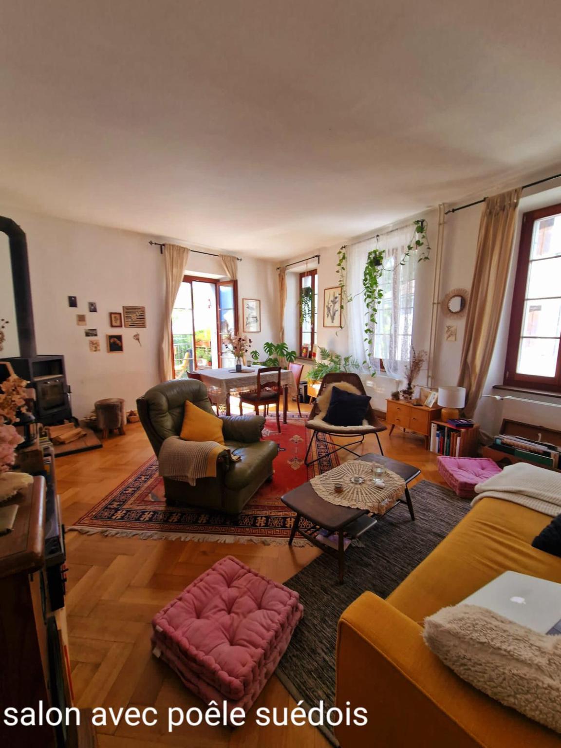 L’appartement dispose d’un grand séjour lumineux équipé d’un poêle, idéal pour une atmosphère conviviale, ainsi que d’une belle terrasse permettant de profiter pleinement du cadre extérieur.