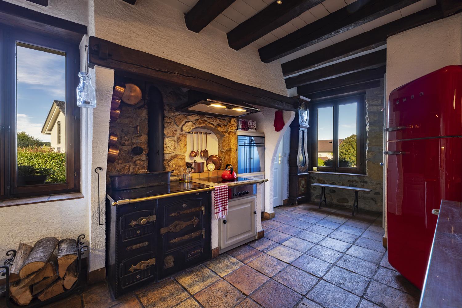 Cette magnifique maison villageoise du XVIIIe siècle, située à Chevilly à seulement 5 minutes de Cossonay, a été rénovée avec soin. Elle allie le cachet de l'ancien (poutres apparentes, murs en pierres de taille, cheminée d'époque) au confort moderne.